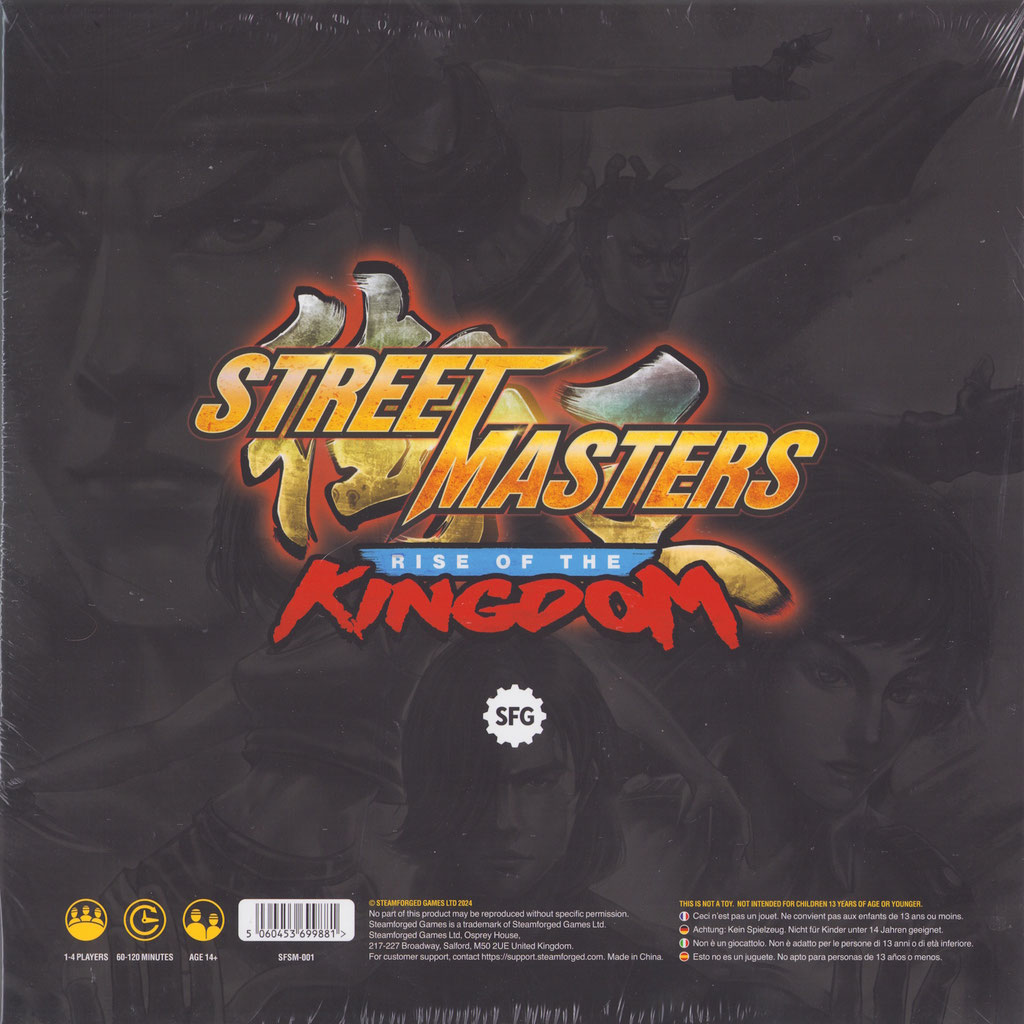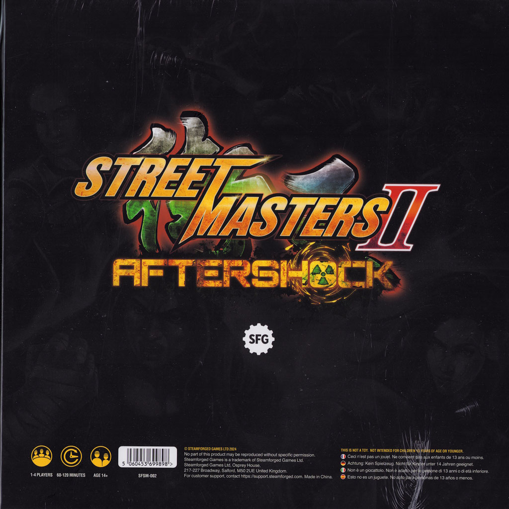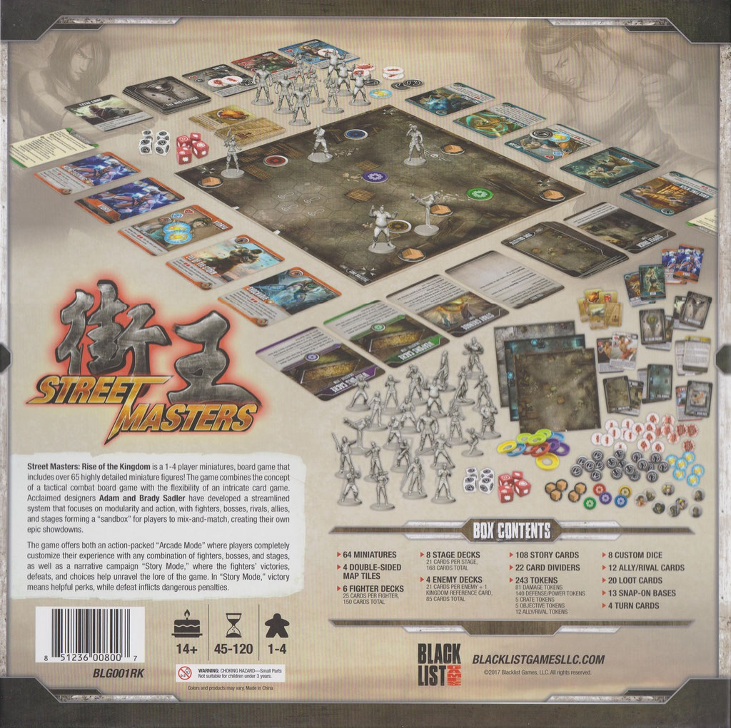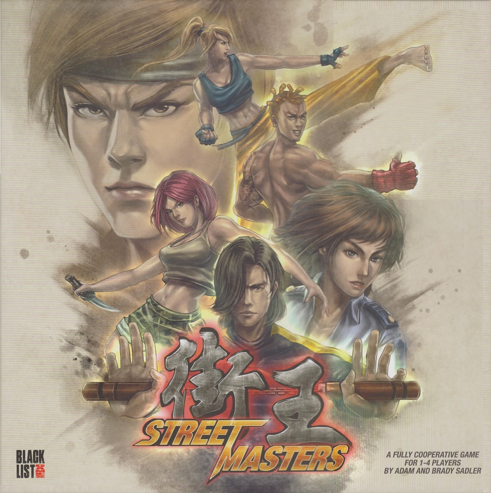 Street Masters wurde von vielen klassischen Videospielen inspiriert. Mit 64 hochdetaillierten Miniaturen, einzigartigen Decks für Kämpfer und Feinde, benutzerdefinierten Würfeln und blitzschnellem Gameplay können die Street Masters mächtige Kämpfer gegen bösen Organisationen in einer Vielzahl spannender Szenarien unterbringen. Das Spiel wurde von Adam Sadler und Brady Sadler entworfen und bietet modulares und elegantes Gameplay in einer einzigartigen und aufregenden Welt des brutalen Kampfes.