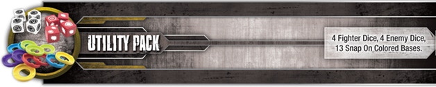 Grundspiel: 64 Miniaturen, 4 doppelseitige Spielplanteile, 6 Kämpferdecks (je 25 Karten, 150 Karten gesamt), 8 Stage-Decks (21 Karten je Stage + 1 Kingdom-Referenzkarte, gesamt