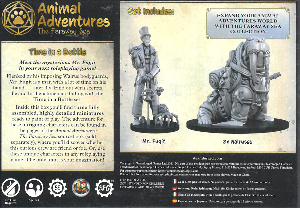 In dieser Box finden Sie drei vollständig zusammengebaute, sehr detaillierte Miniaturen, die Sie bemalen oder spielen können. Das Abenteuer dieser faszinierenden Charaktere finden Sie auf den Seiten des Quellenbuchs „Animal Adventures: The Faraway Sea“ (separat erhältlich), wo Sie herausfinden, ob diese neugierige Crew Freund oder Feind ist. Oder verwenden Sie diese einzigartigen Charaktere in jedem Rollenspiel. Die einzige Grenze ist Ihre Fantasie! Erweitere deine Tierische Abenteuerwelt mit der Faraway Sea-Kollektion |